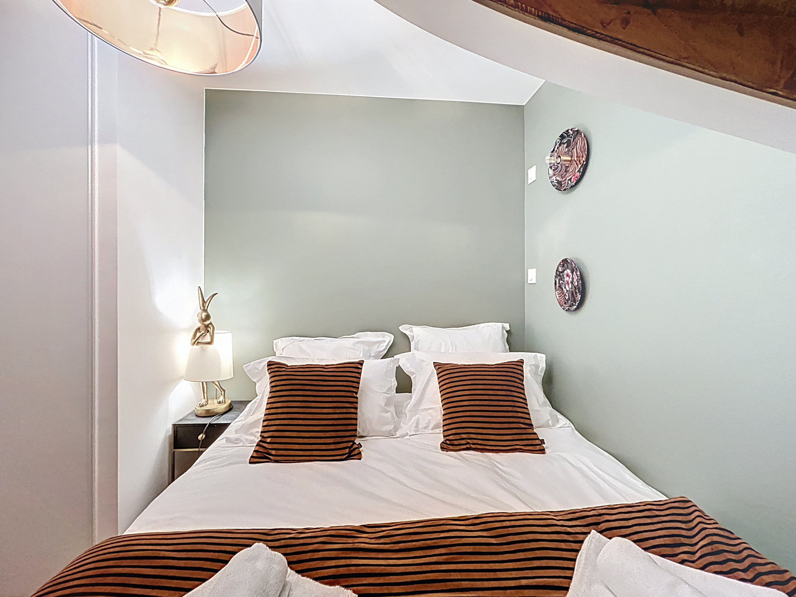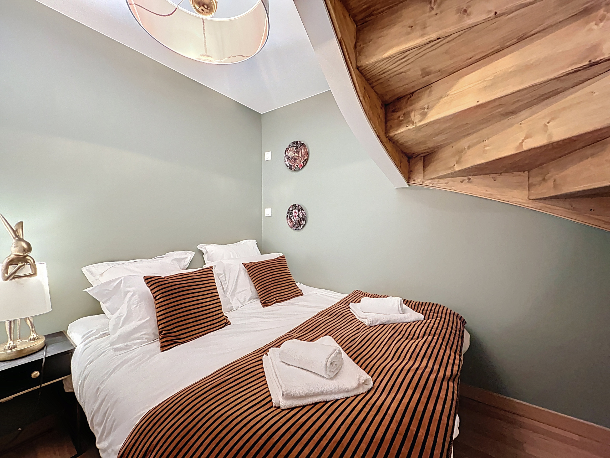 The first bedroom includes a 160x200 bed and offers the possibility of placing a baby bed nearby if necessary.