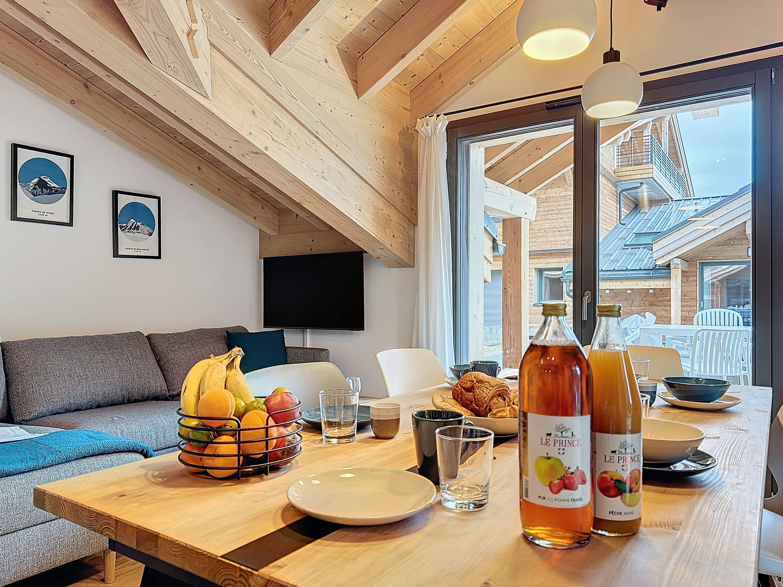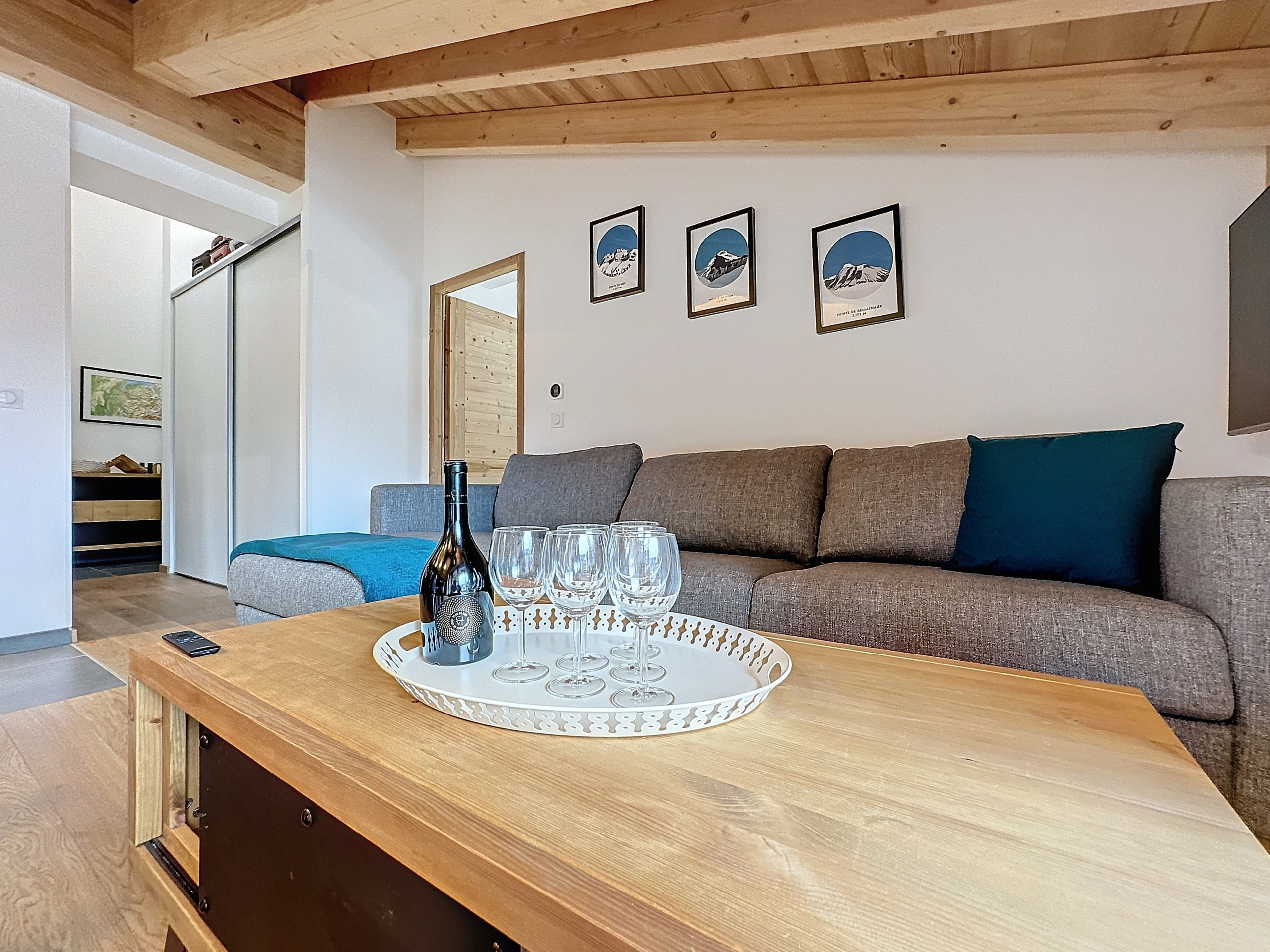 Découvrez cet élégant appartement situé au cœur des Gets. Avec ses 64 m² de surface, ce logement moderne et décoré avec goût vous offre tout le confort nécessaire pour vos vacances à la montagne.