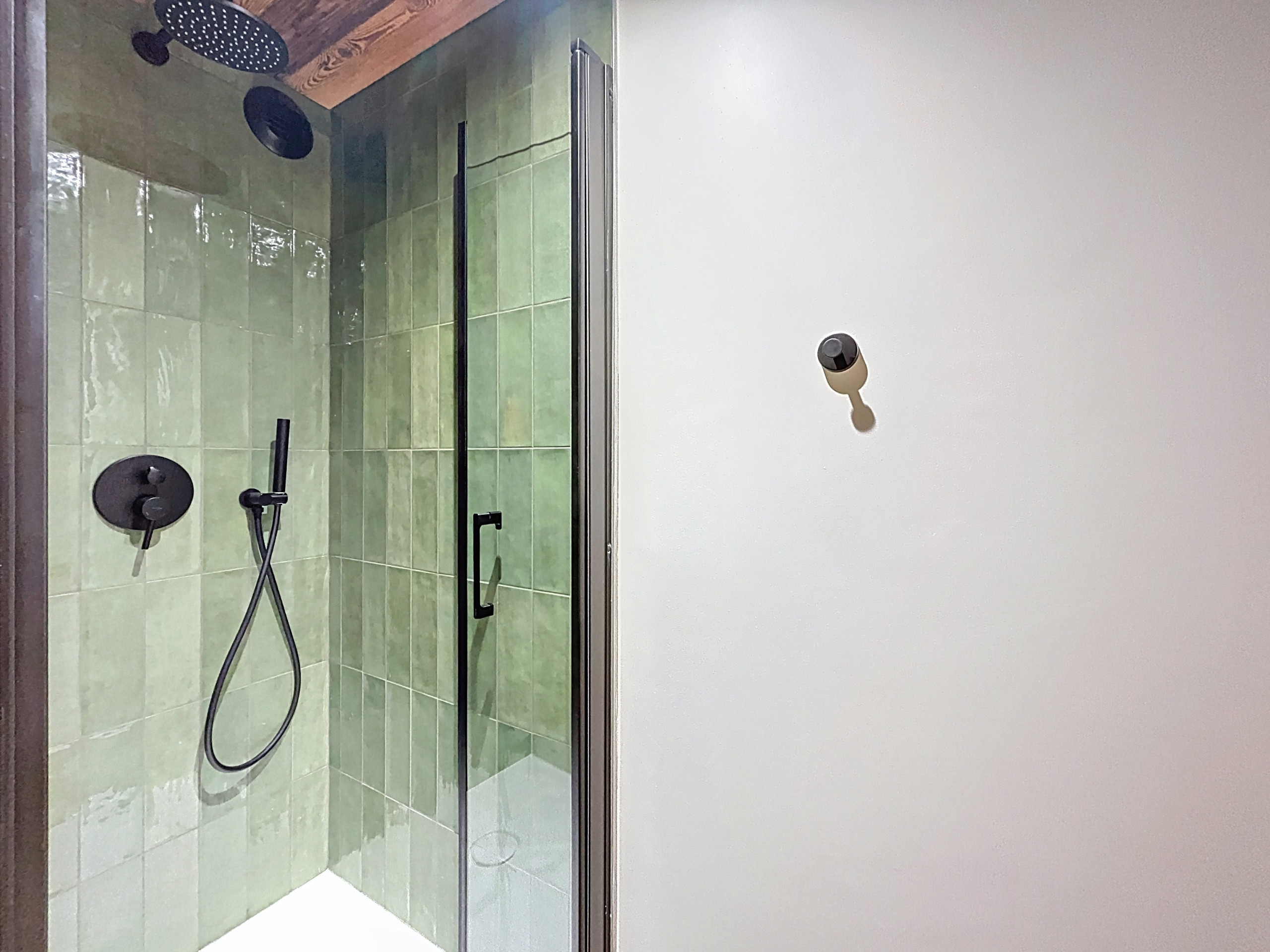 Le dernier étage est entièrement réservé à la suite master, équipée d’un lit King size et d’une salle de bain avec baignoire et douche, offrant un espace calme et confortable.