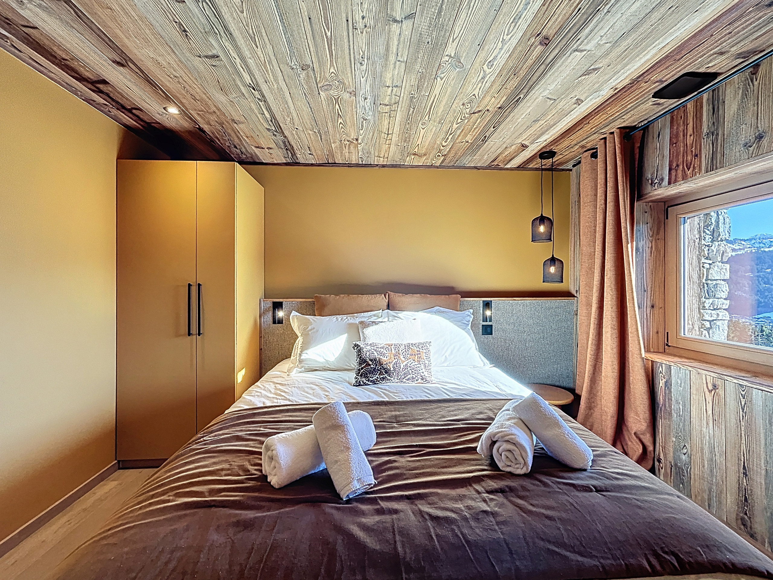 Idéal pour des séjours à la montagne en famille ou entre amis, le chalet offre une atmosphère contemporaine et chaleureuse, avec un mobilier soigné et des volumes harmonieusement répartis. La terrasse et le balcon permettent de profiter pleinement du cadre alpin, tandis qu’un terrain de jeux de boules extérieur invite à partager des moments conviviaux après une journée au grand air.