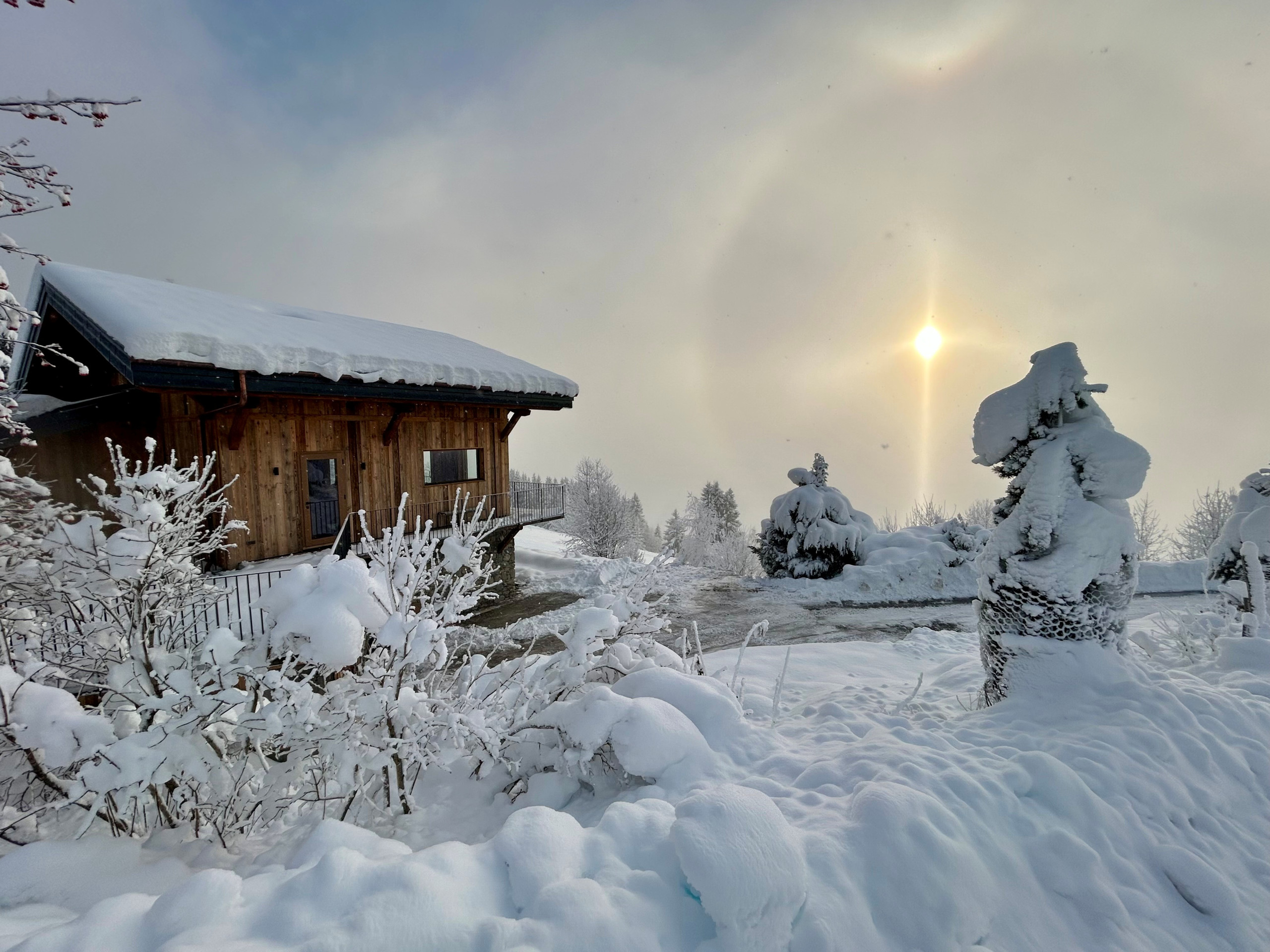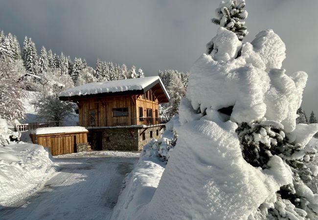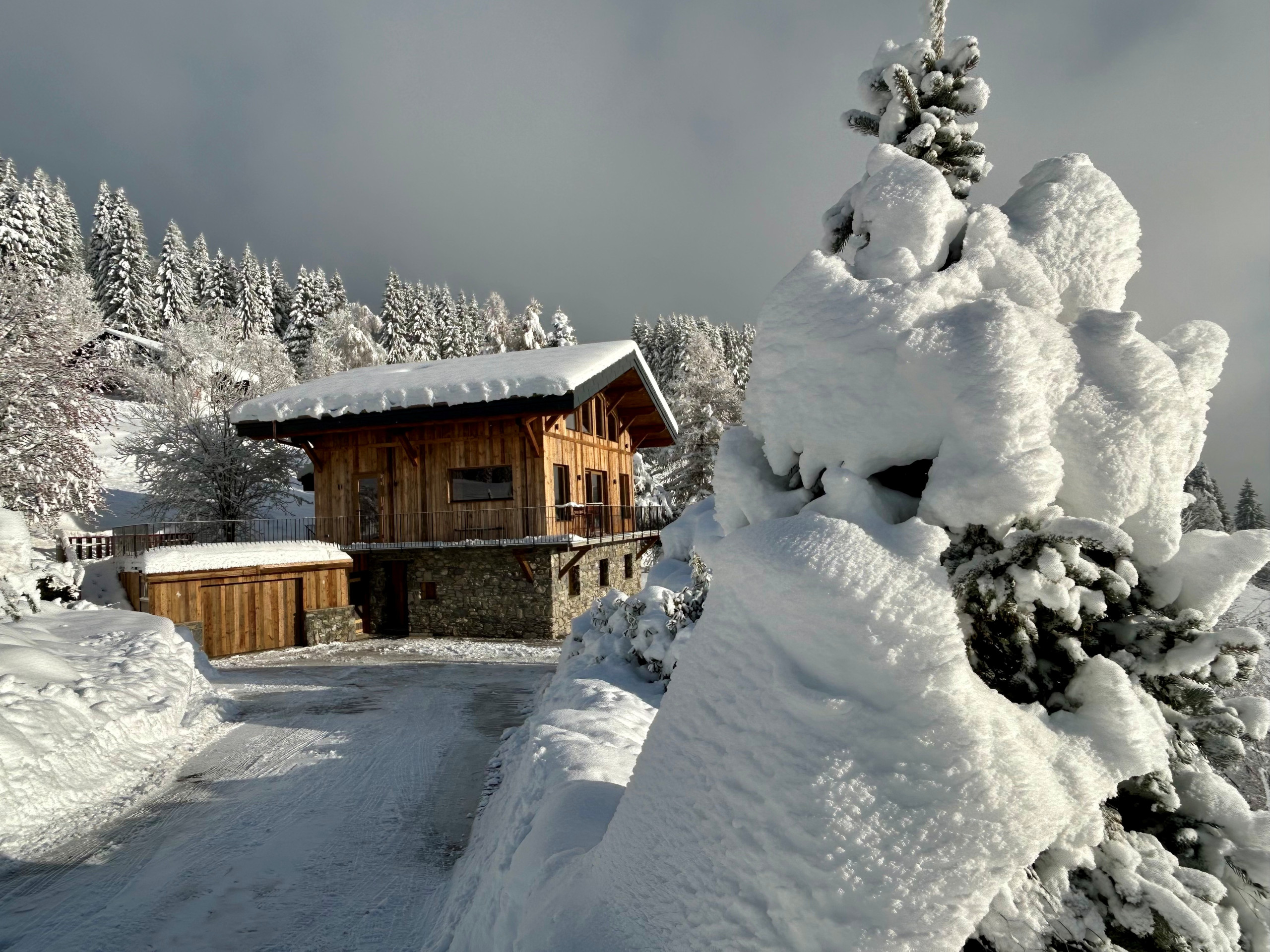 Le chalet est installé sur un vaste terrain privé, offrant un espace rare et paisible pour jouer dans la neige ou simplement admirer le paysage en toute tranquillité. À seulement quelques minutes en voiture du domaine skiable des Gets, il constitue un pied-à-terre idéal pour les amateurs de ski, de raquettes ou de balades hivernales.