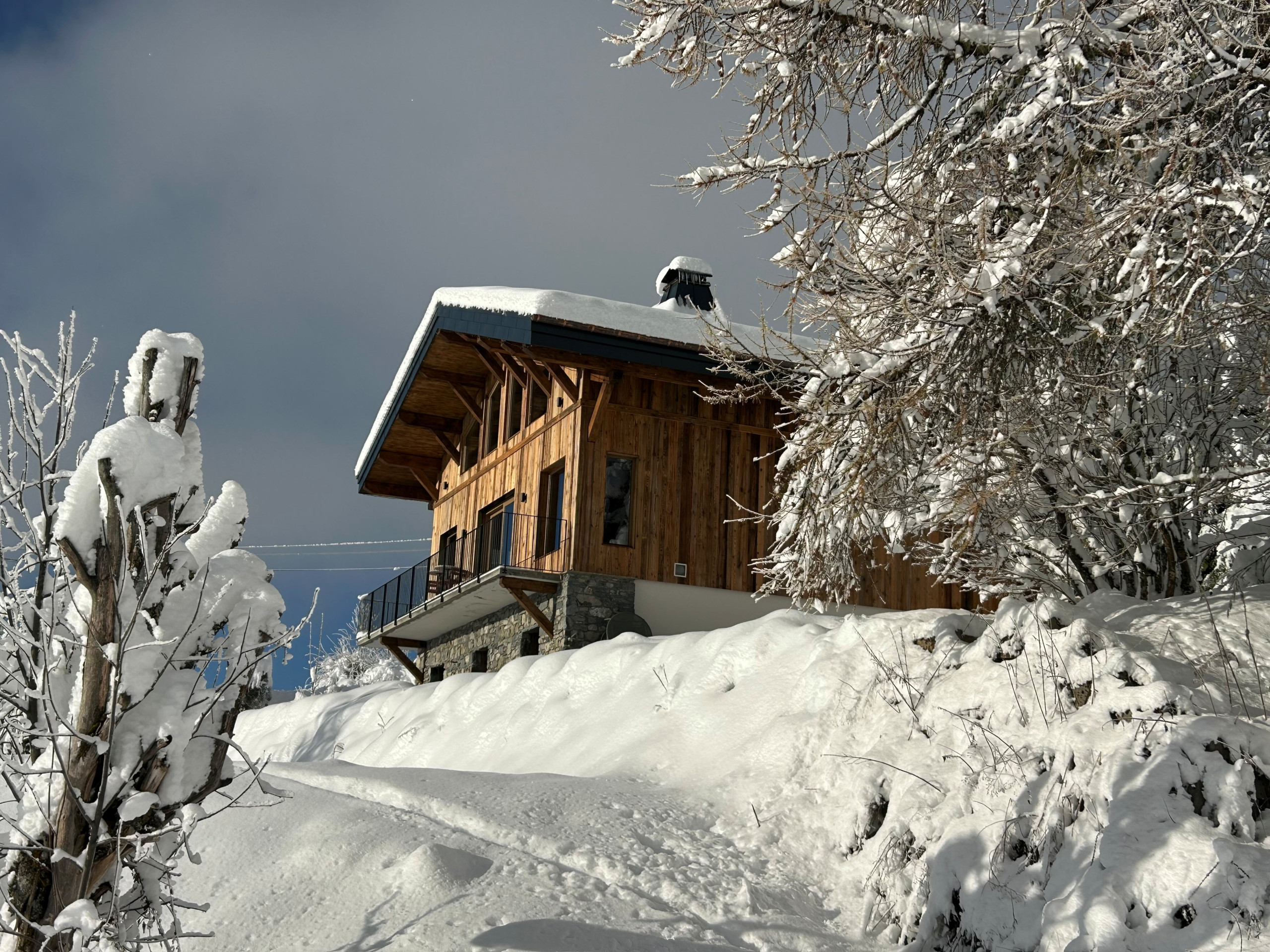 Construit en bois et en pierre, le chalet offre une ambiance cosy et typiquement alpine, parfaite pour se retrouver en famille ou entre amis après une journée sur les pistes. Pour prolonger ces moments de détente, vous pourrez également profiter d’un sauna tonneau extérieur, pouvant accueillir jusqu’à 6 personnes, installé au cœur du jardin pour une expérience bien-être unique face aux montagnes.