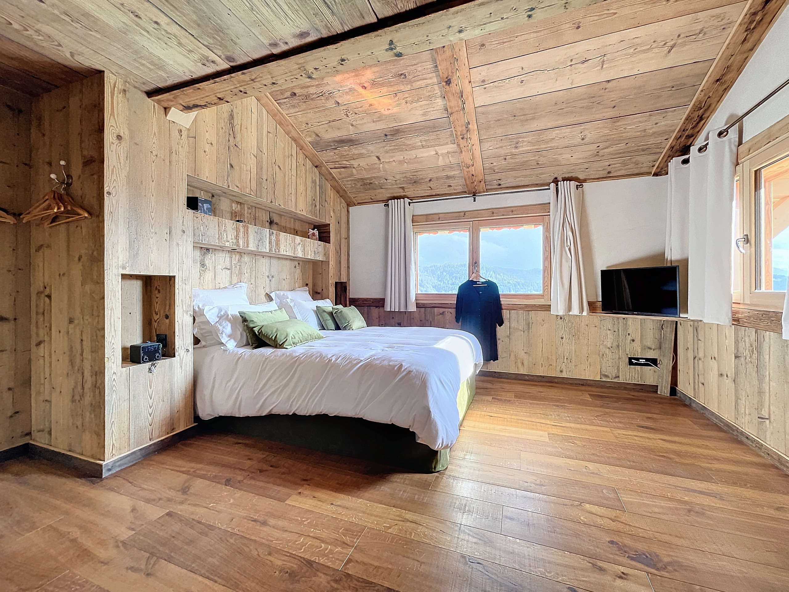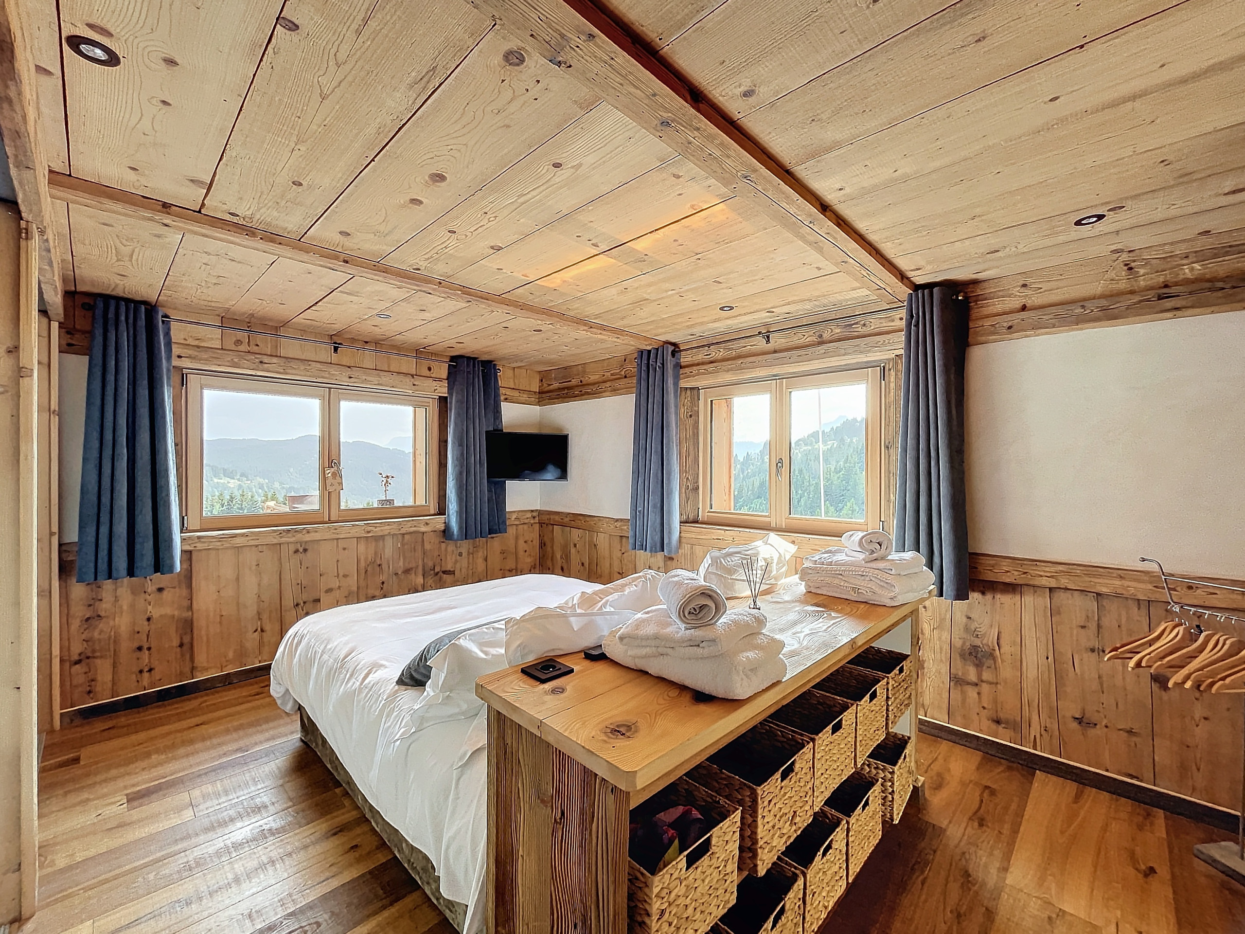 Le chalet est installé sur un vaste terrain privé, offrant un espace rare et paisible pour jouer dans la neige ou simplement admirer le paysage en toute tranquillité. À seulement quelques minutes en voiture du domaine skiable des Gets, il constitue un pied-à-terre idéal pour les amateurs de ski, de raquettes ou de balades hivernales.