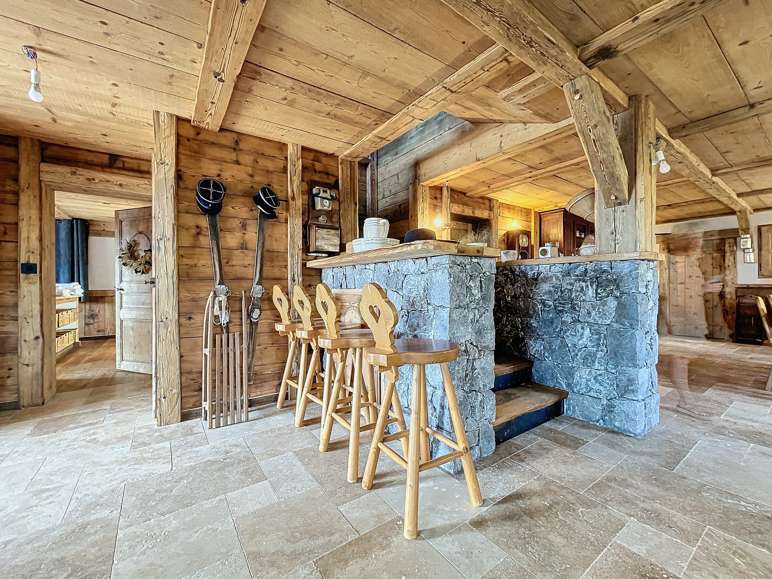 Construit en bois et en pierre, le chalet offre une ambiance cosy et typiquement alpine, parfaite pour se retrouver en famille ou entre amis après une journée sur les pistes. Vous pourrez profiter d’un environnement calme et préservé, entouré de nature, avec une vue imprenable sur les sommets enneigés.
